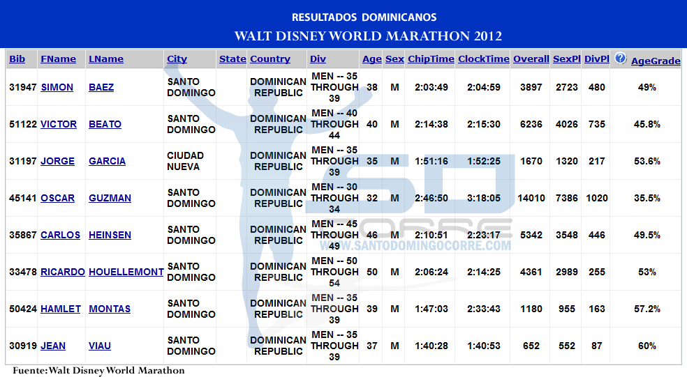 A continuación les dejo con una frase inspiradora que estaba en los brochures entregados en la carrera, y con los tiempos de los dominicanos presentes!